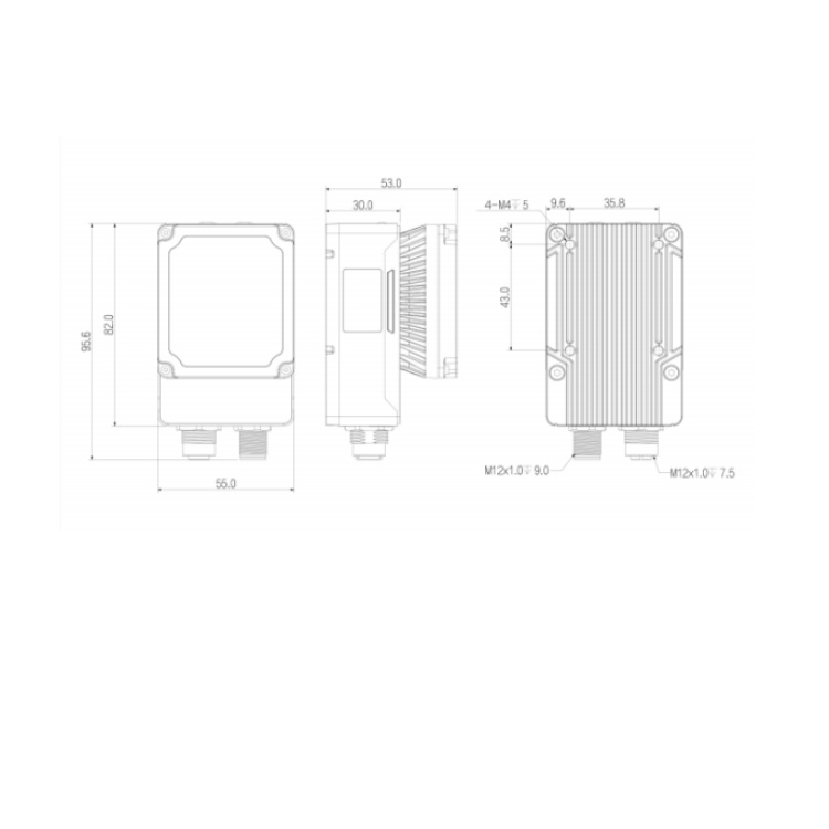 R5016MG-08M-WGG01 华睿科技R5000系列160万像素8mm镜头全局快门60fps千兆工业以太网接口白光智能读码器 结构尺寸图(mm):