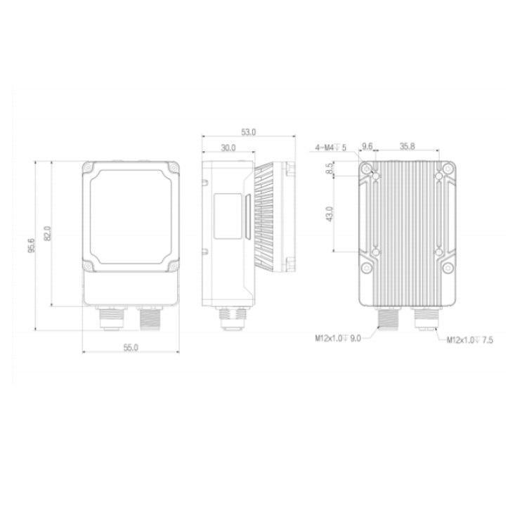 R5016MG-12M-WGG01 华睿科技R5000系列160万像素12mm镜头全局快门60fps千兆工业以太网接口白光智能读码器结构尺寸图(mm):