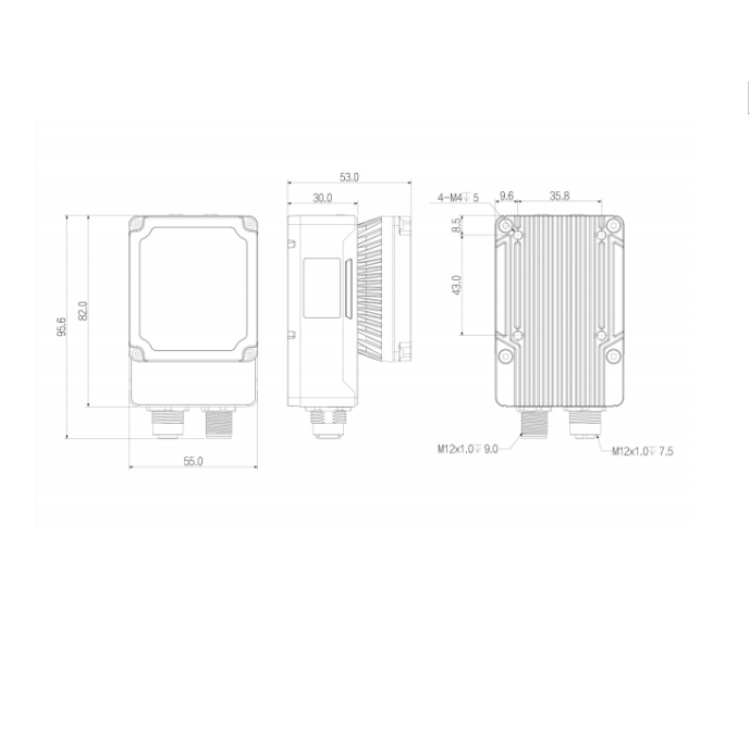 R5016MG-12M-BGG01 华睿科技R5000系列160万像素12mm镜头全局快门60fps千兆工业以太网接口深度学习蓝光智能读码器结构尺寸图(mm):