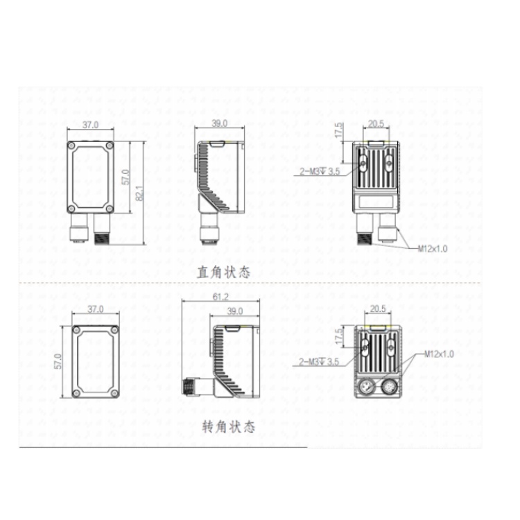R5030PMG-05M-WGG01 华睿科技R5000系列300万像素5mm镜头全局快门60fps百兆工业以太网接口深度学习算法白光智能读码器结构尺寸图(mm):