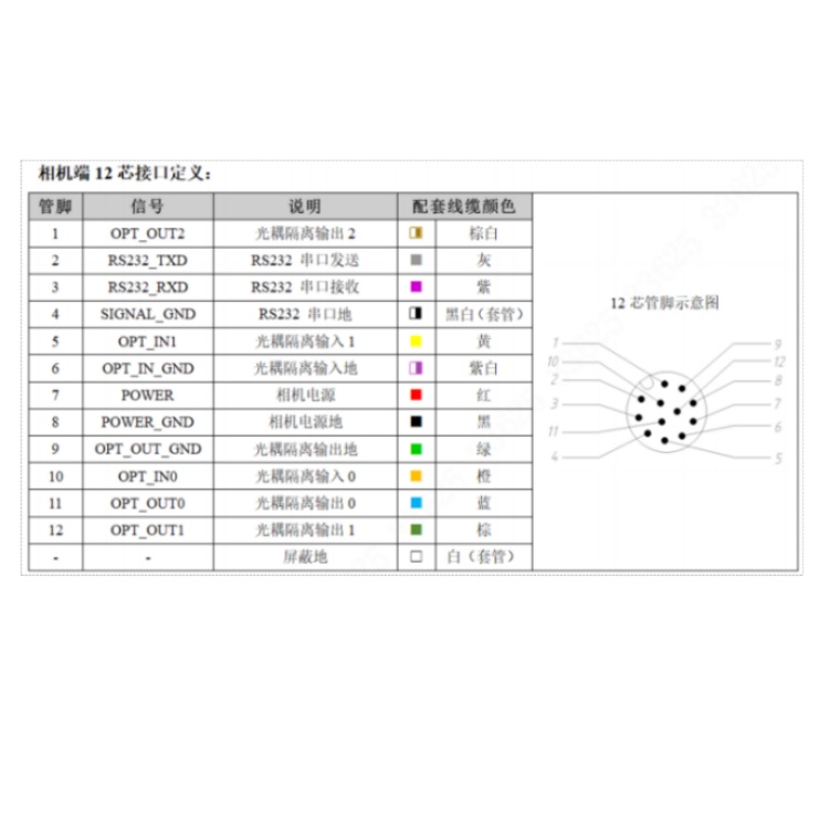 R5030PMG-05M-WGG01 华睿科技R5000系列300万像素5mm镜头全局快门60fps百兆工业以太网接口深度学习算法白光智能读码器接口定义:
