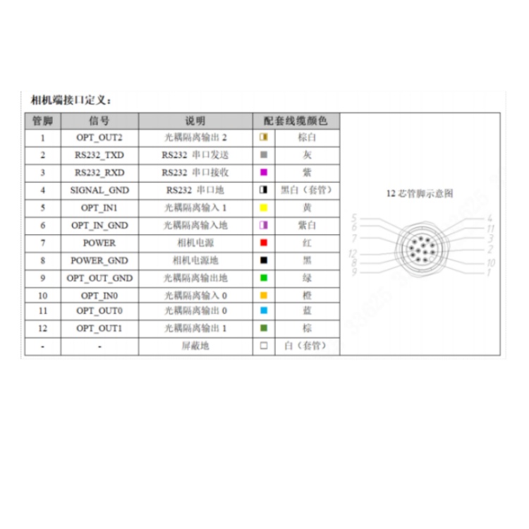 R5050MG-16M-WGG02 华睿科技R5000系列500万像素16mm镜头全局快门45fps千兆工业以太网接口深度学习算法白光智能读码器 接口定义: