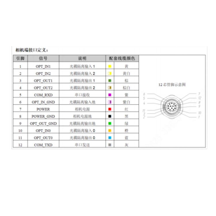 R7250MG-00C-NGG01 华睿科技R7000系列2500万像素1.1英寸CMOS帧率12fps内置深度学习算法千兆工业以太网接口智能读码器 接口定义: