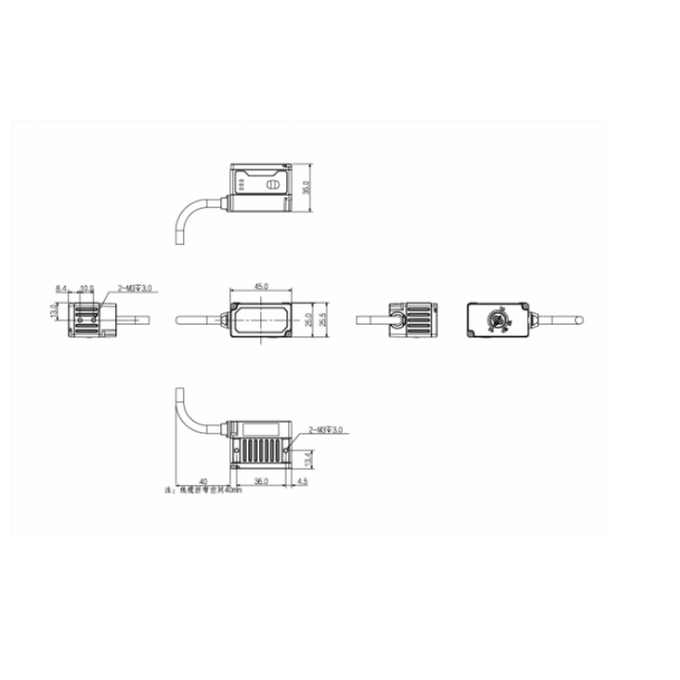 产品尺寸 45.0mm × 35.0mm × 25.5mm(不含线缆)