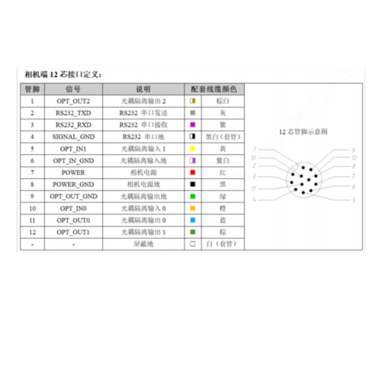 SS4013CG-12M-WGG01 华睿科技SS4000系列130万像素12mm镜头全局快门60fps内置算法工具百兆工业以太网接口白光彩色相机 接口定义: