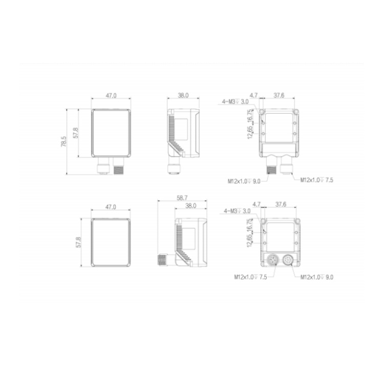 SS4013MG-07M-RGG01 华睿科技SS4000系列130万像素7mm镜头全局快门60fps内置丰富算法工具百兆以太网接口黑白红光智能相机结构尺寸图(mm):