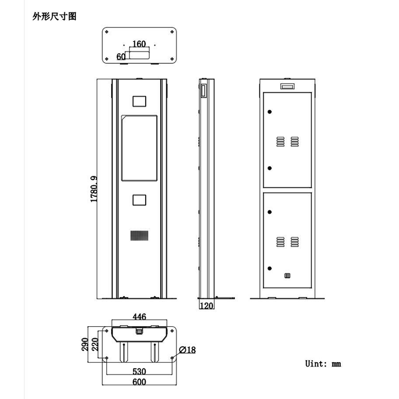 DS-2CD8K86H/PHY-S 海康威视21寸体育训测一体机双镜头加强版 产品尺寸:
