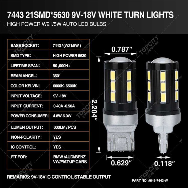 跨境专供LED汽车灯转向灯角灯日行灯 T20 W21/5W 7443 21SMD 5630 品牌 | TOPCITY/光亮一号 | ||