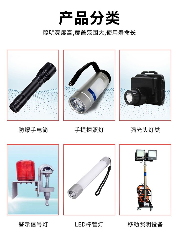 适用场所 | 铁路、航运、部队 、警察和工矿企业及各种野外工作场所作移动照明和信号指示 | ||