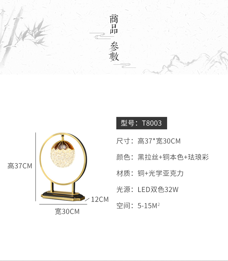 进丰创意时尚卧室台灯中式全铜落地灯定制北欧古典led装饰灯