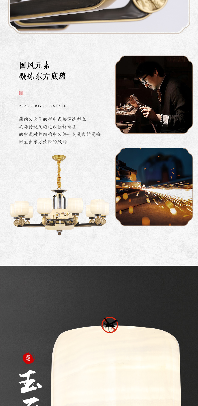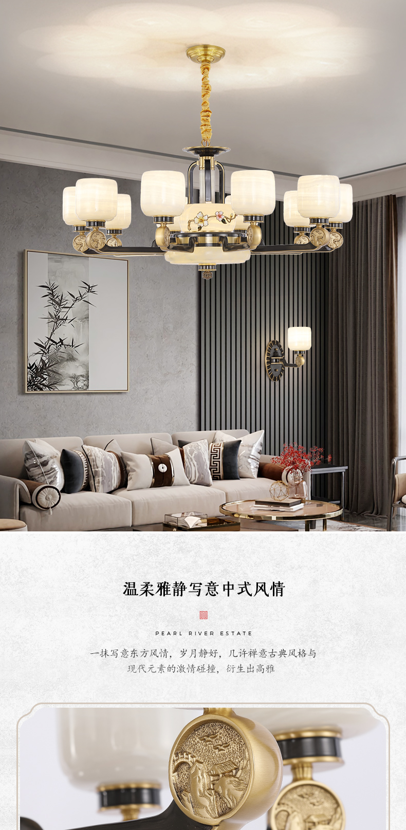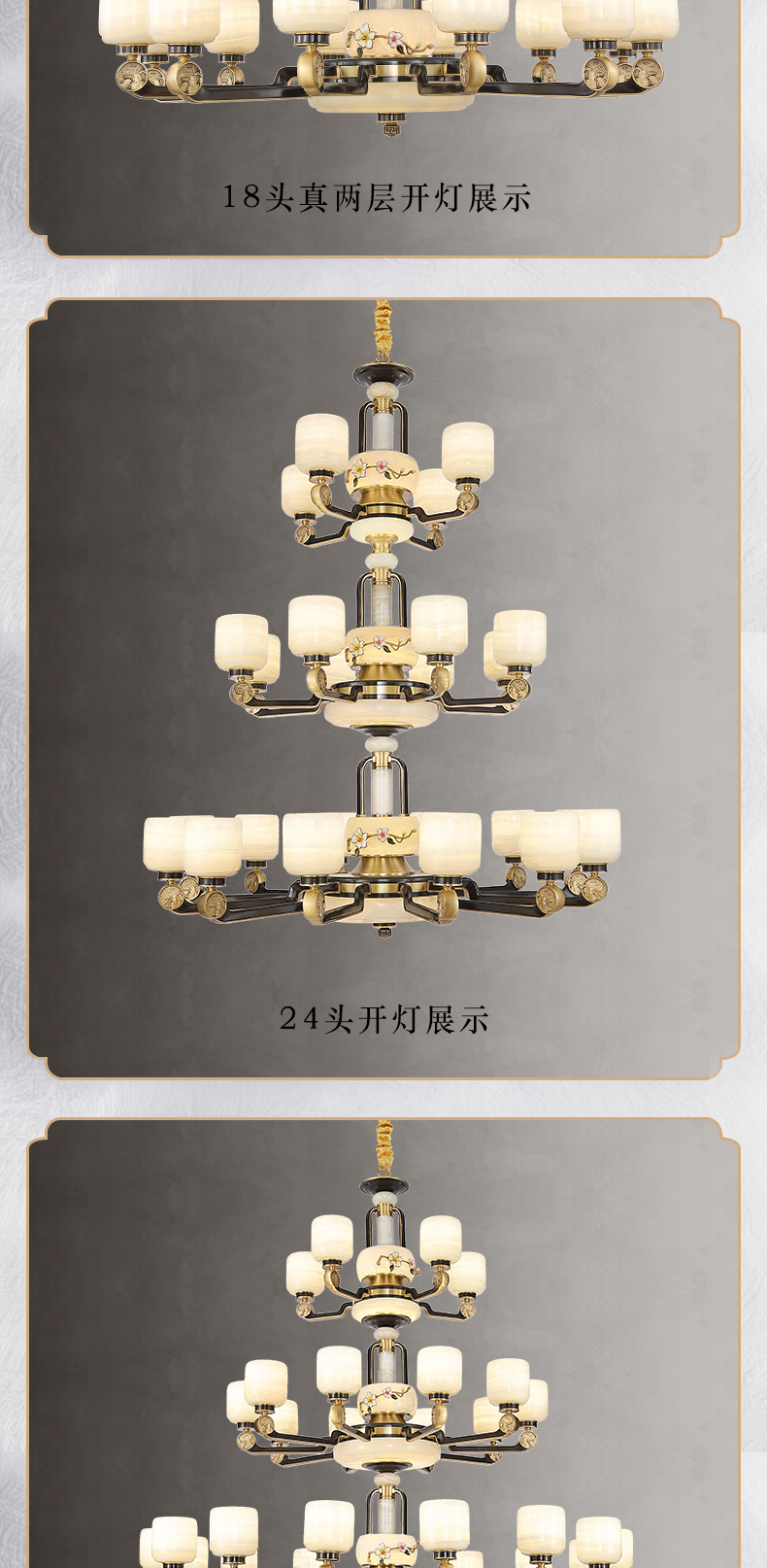 进丰轻奢全铜天然玉石灯别墅大厅复式楼客厅吊灯定制中式欧式灯饰
