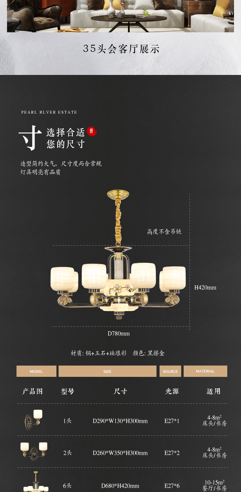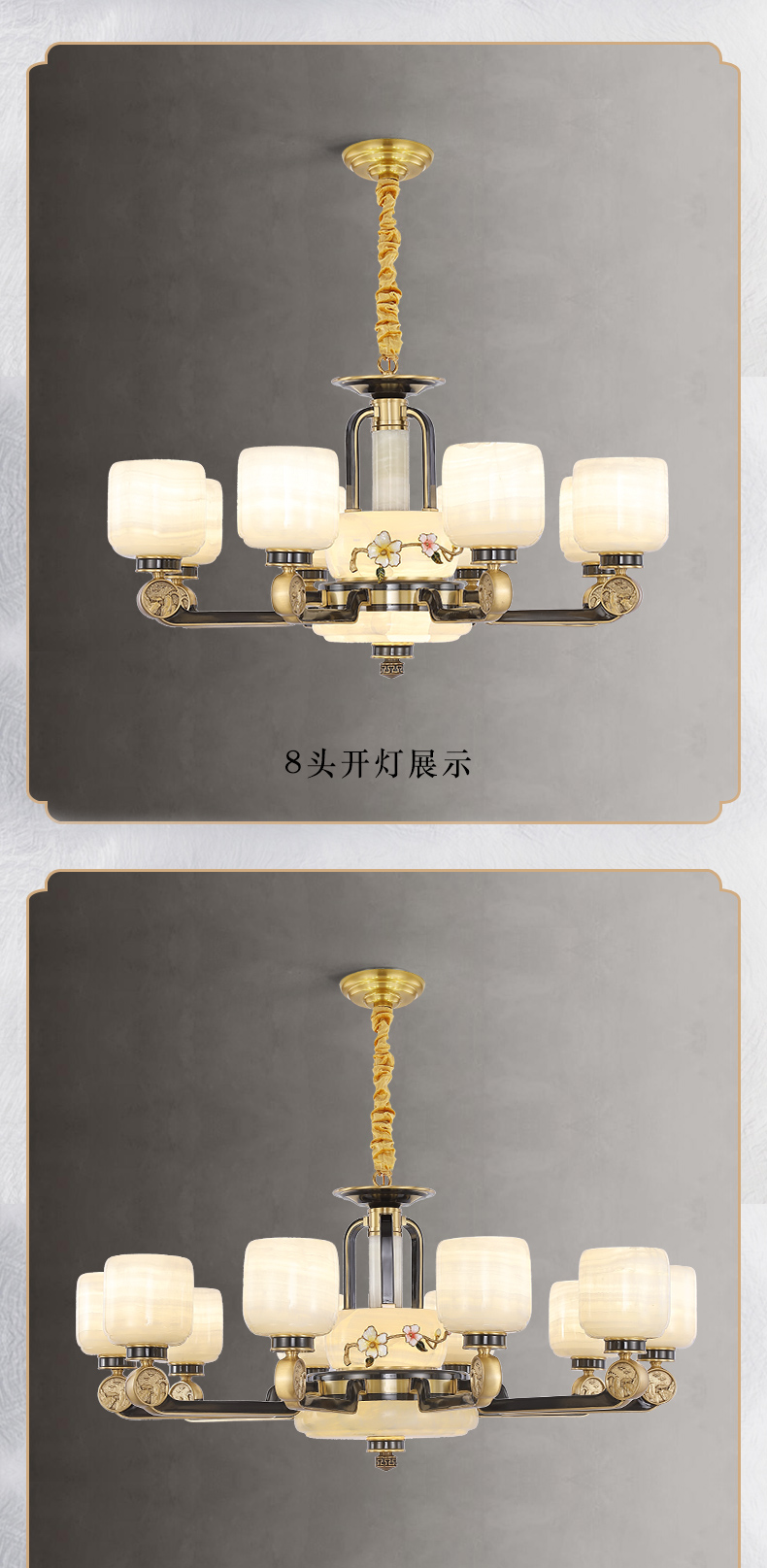 灯具材质全铜灯臂 白玉石灯罩 珐琅彩玉石中柱 玉石底锅