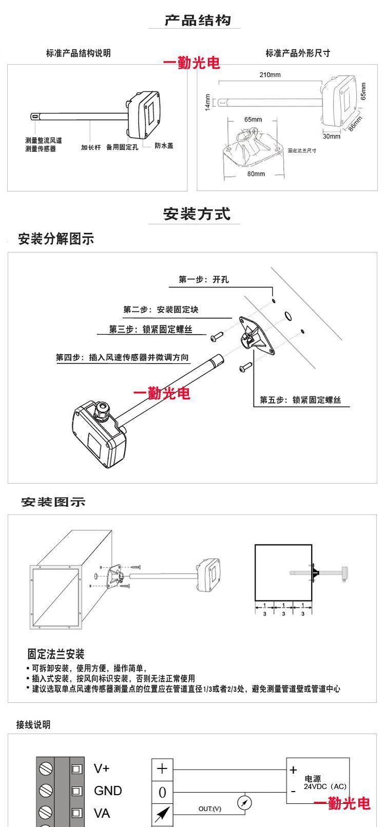 热膜式管道风速传感器