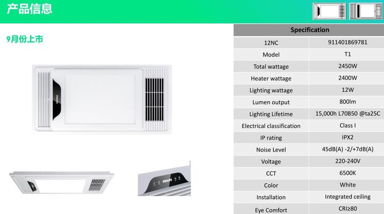 飞利浦T系列取暖换气吹风照明四合一多功能集成吊顶LED浴霸灯