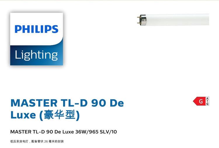 飞利浦MASTER TL-D 90 De Luxe 36W/965 T8 高显色印刷厂对色灯管 品牌 | 飞利浦 | ||