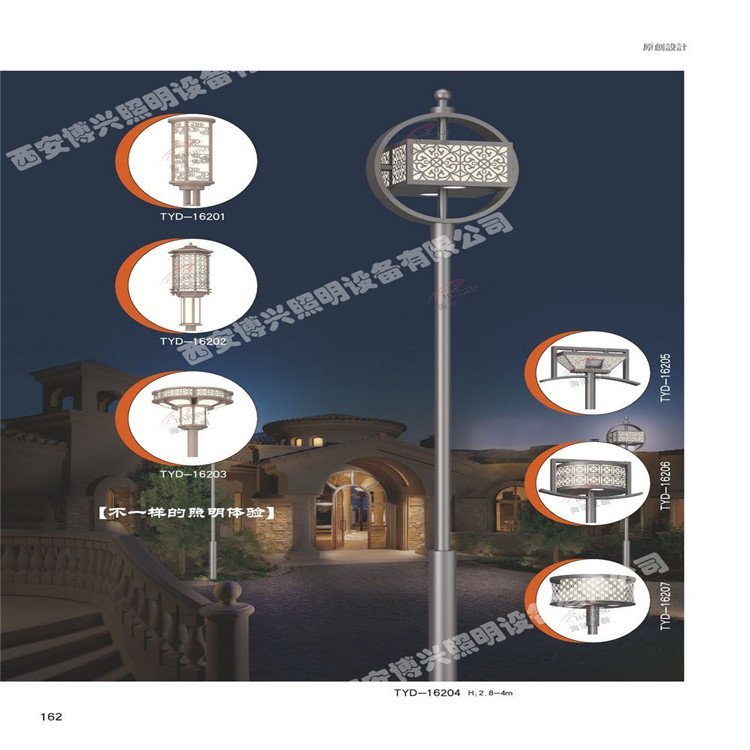 ? ? 庭院灯杆体有浇铸铝、普通钢材、不锈钢材,其中前两种原料防腐性能好、造型改变多,如铝浇铸灯杆、支架及灯碗,不但造型多样,并且外表可雕有各种花纹,艺术性较高;不锈钢原料天生亮丽,色泽天然,配以一定造型给人以轻盈纯真之美感;地埋灯则以铝质、不锈钢为主;草坪灯则以浇铸铝、钢质居多。紧固体均采用不锈钢件,方便维修。灯罩原料选用防弹玻璃和有机材料(PL、Pc、PMMA等),其性状有通明与不通明、无色与有色之分,依据不同的灯型,挑选恰当色泽的透光罩,能起到画龙点睛的作用。彩色有鲜活动听之感,不通明有模糊妩媚之感,通明则有晶亮透亮之感。