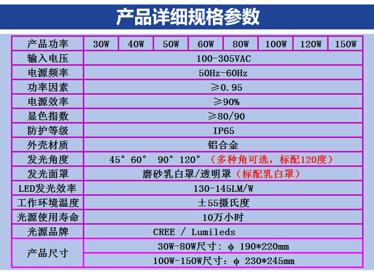 发光角度25度/45度/60度/90度