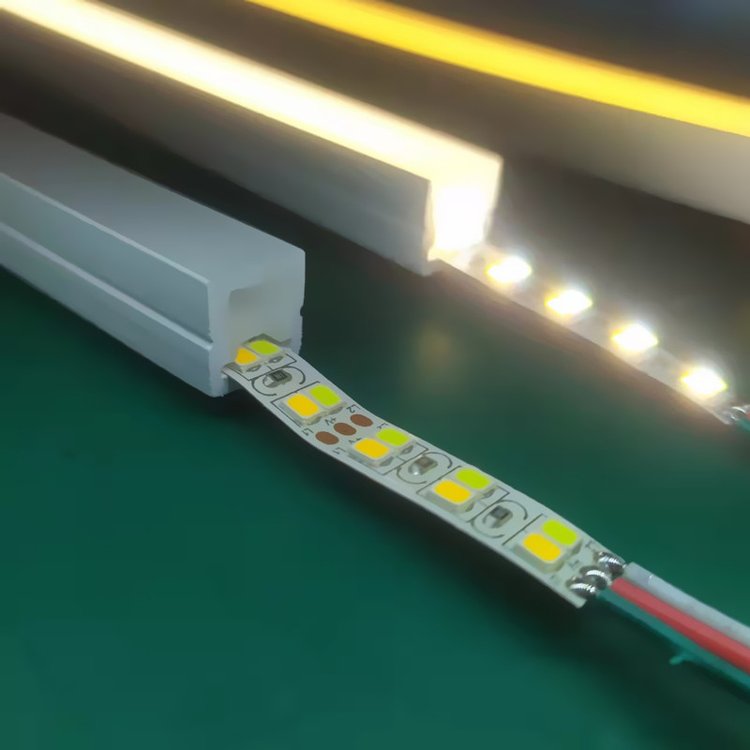LED柔性霓虹灯条采用SMD2835双色温灯条,纯硅胶材质霓虹管,可以任意弯曲,直行发光,侧面弯曲,双色温顾名思义就是一种灯可以调光调色3种颜色,广泛应用于墙面装饰,智能展厅。