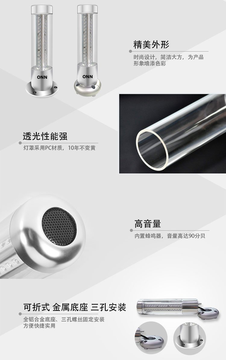 欧恩LED三色警示灯设备三色灯设备报警灯12V24V可折常亮带蜂鸣