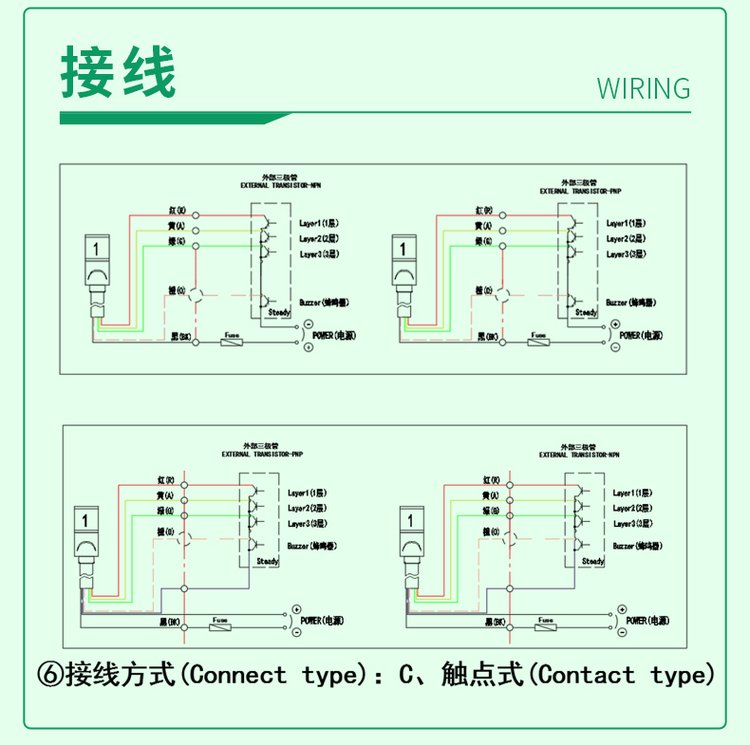 接线方式 | 触点式、不分正负极 | ||