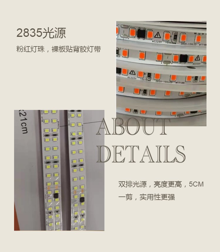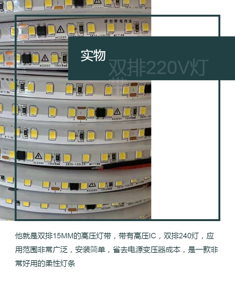 双排220V自粘柔性灯带FPC超薄240灯高亮50CM一剪适用15MM硅胶套管