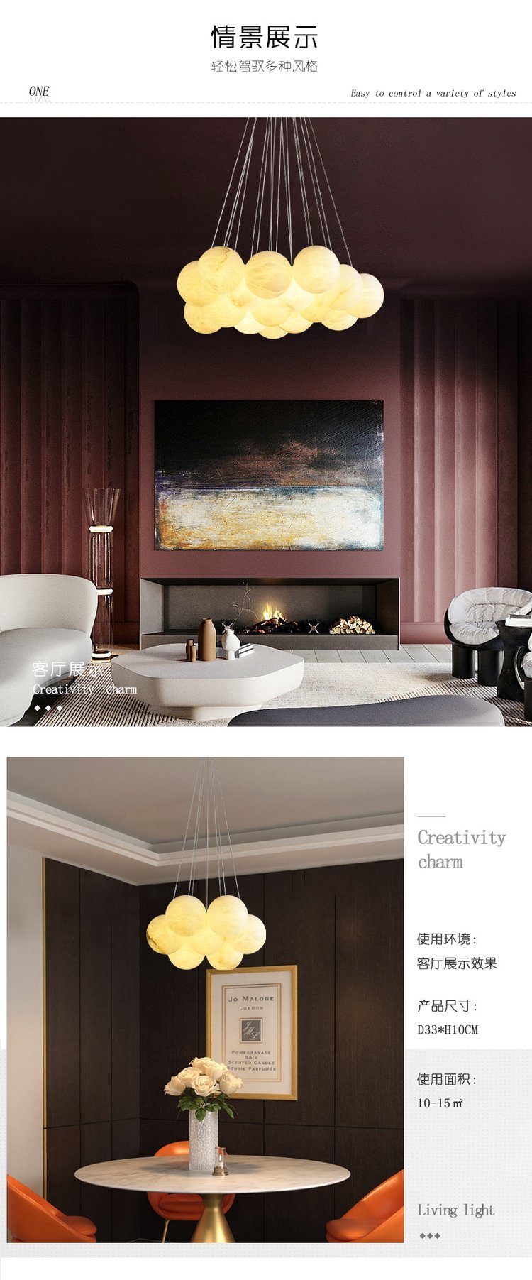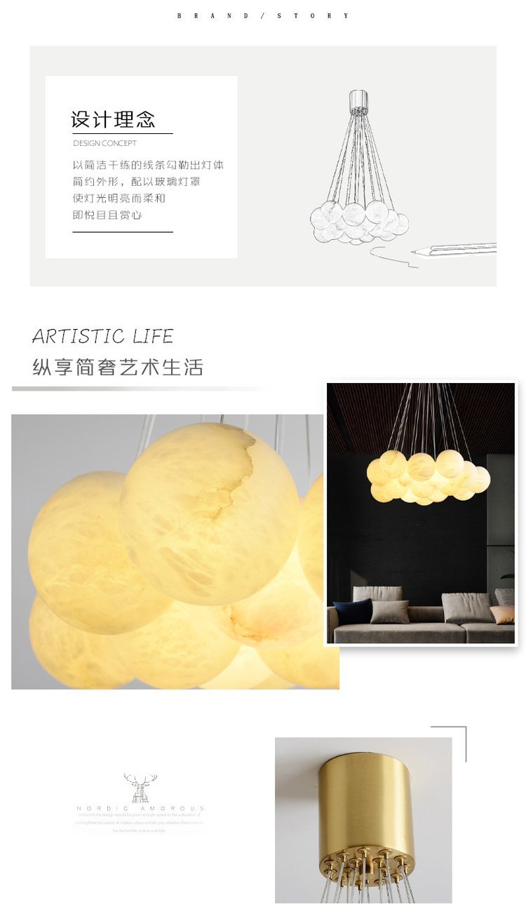 进丰创意时尚酒店大堂大厅圆球吊灯北欧现代简约天然云石球吊线灯