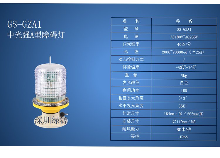 类型 | 中光强A型障碍灯 | ||