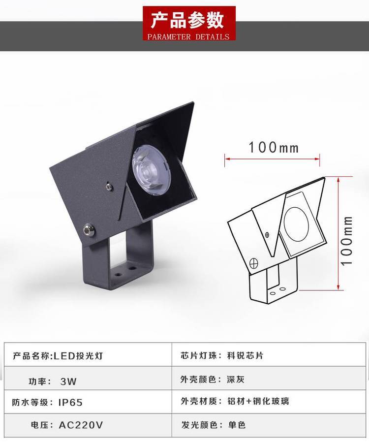 二、led投射灯参数: