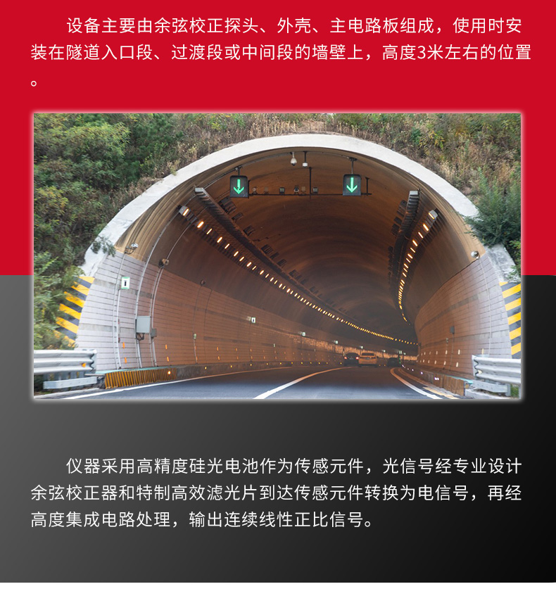 安装方式 | 安装在4m左右的高度,距隧道入口大于10m的适当位置 | ||