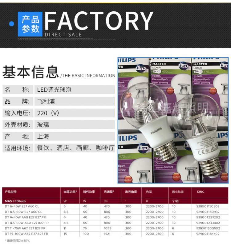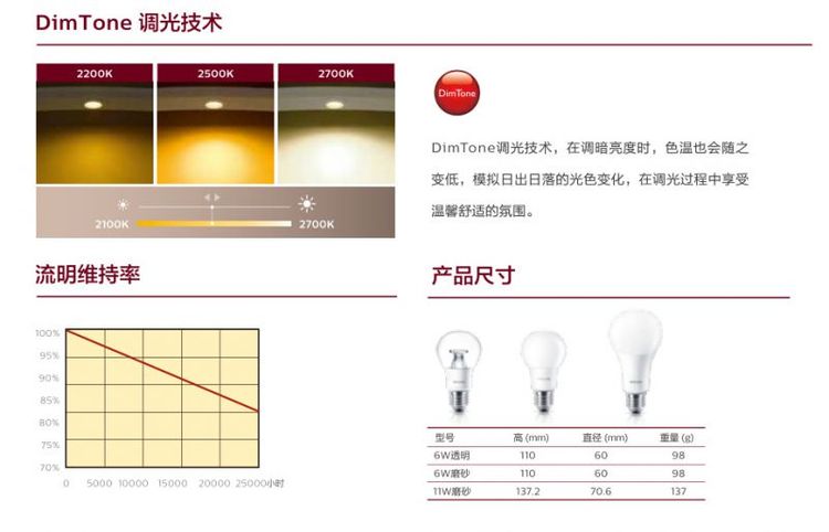 飞利浦LED调光球泡 E27 透明磨砂可选