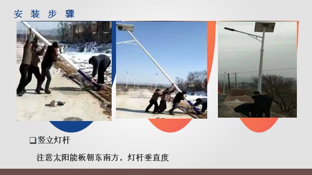太阳能路灯系统可以保障阴雨天气15天以上正常工作!它的系统组成是由LED光源(含驱动)、太阳能电池板、蓄电池(包括蓄电池保温箱)、太阳能路灯控制器、路灯灯杆(含基础)及辅料线材等几部分构成 [1] 。太阳能电池组件一般选用单晶硅或者多晶硅太阳能电池组件;LED灯头一般选用大功率LED光源;控制器一般放置在灯杆内,具有光控、时控制、过充过放保护及反接保护,更高级的控制器更具备四季调整亮灯时间功能、半功率功能、智能充放电功能等;蓄电池一般放置于地下或则会有专门的蓄电池保温箱,可采用阀控式铅酸蓄电池、胶体蓄电池、铁铝蓄电池或者锂电池等。太阳能灯具全自动工作,不需要挖沟布线,但灯杆需要装置在预埋件(混凝土底座)上。