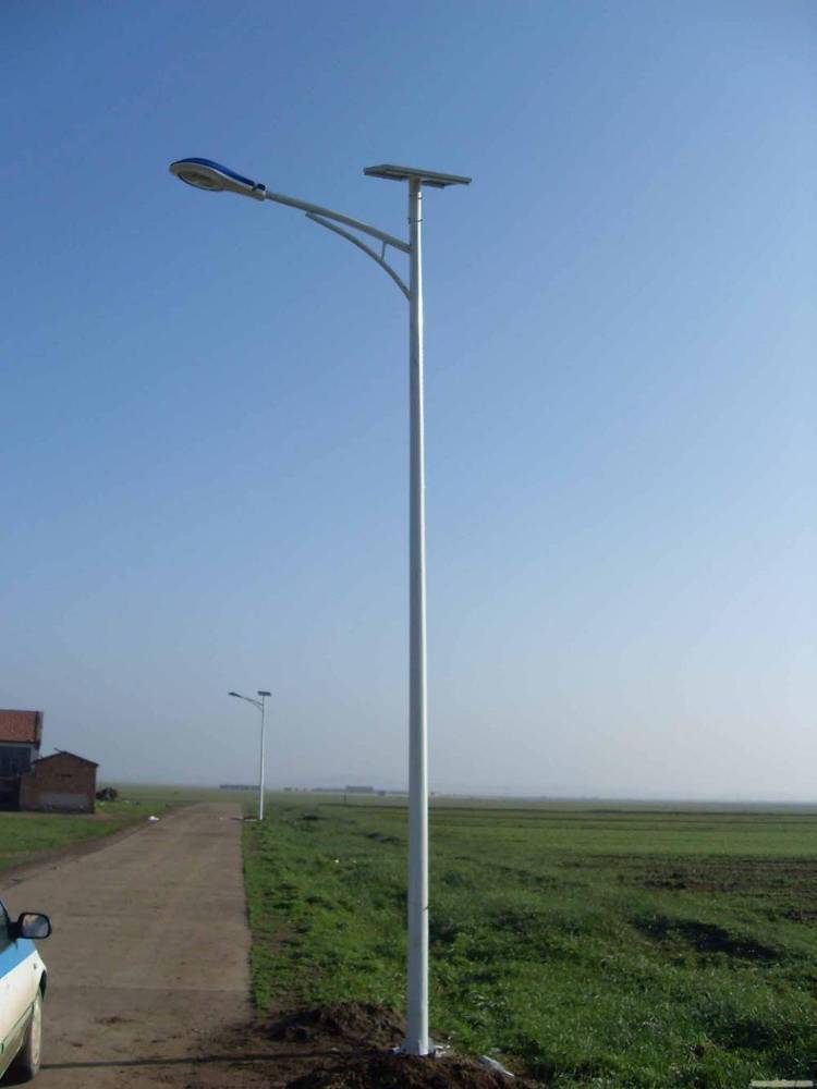 一般太阳能路灯的灯杆的材质是Q235钢材,博兴照明为了增加灯杆的耐腐蚀性,对灯杆进行了热镀锌处理,外表喷涂了氟碳漆,整个灯杆可谓是全副武装,可以保证路灯灯杆在15年内不会被腐蚀,在质量上有信心。