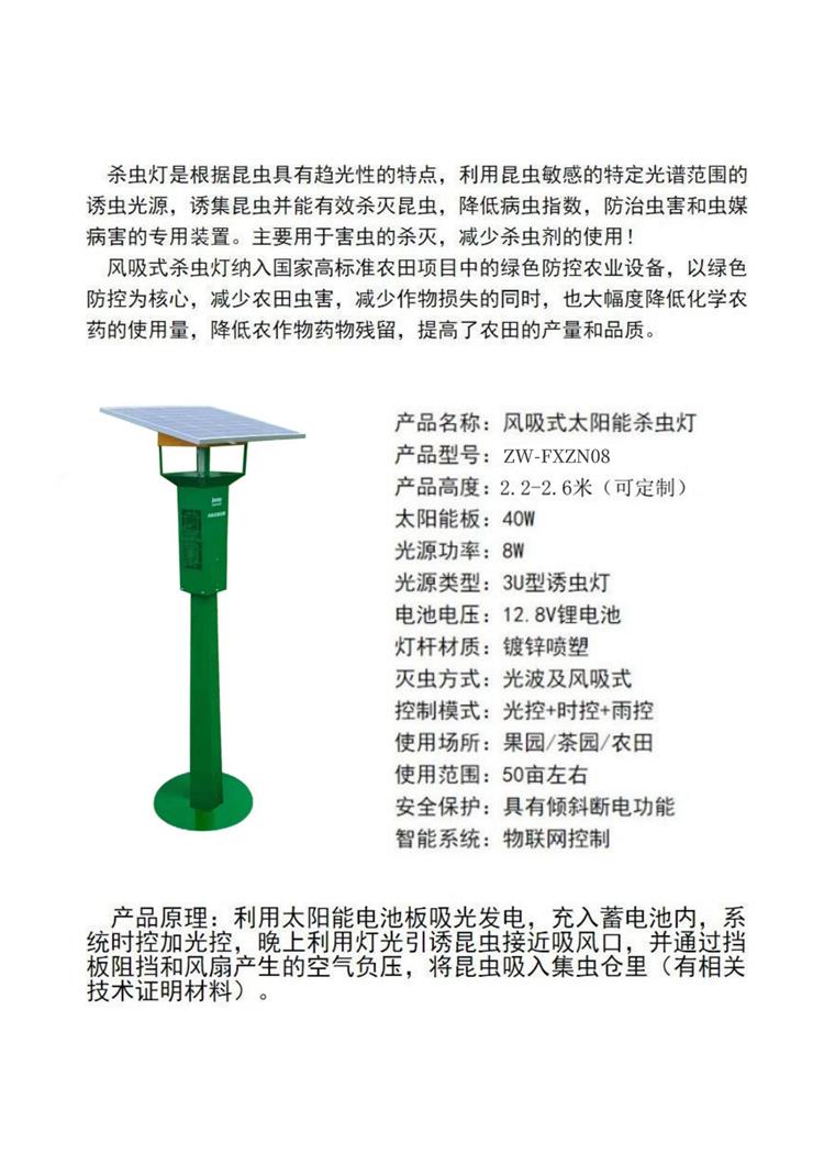 产品名称 | 风吸式太阳能杀虫灯 | ||