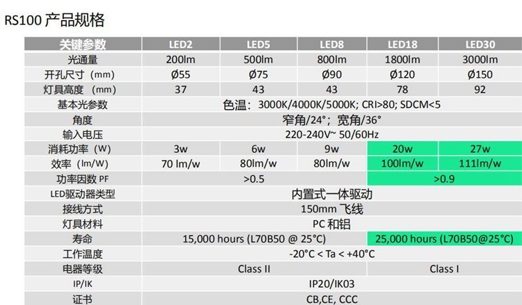 3、新增大瓦数选择:新增18W(1800lm)和27W(3000lm)版本,更高效率,适合项目投标。