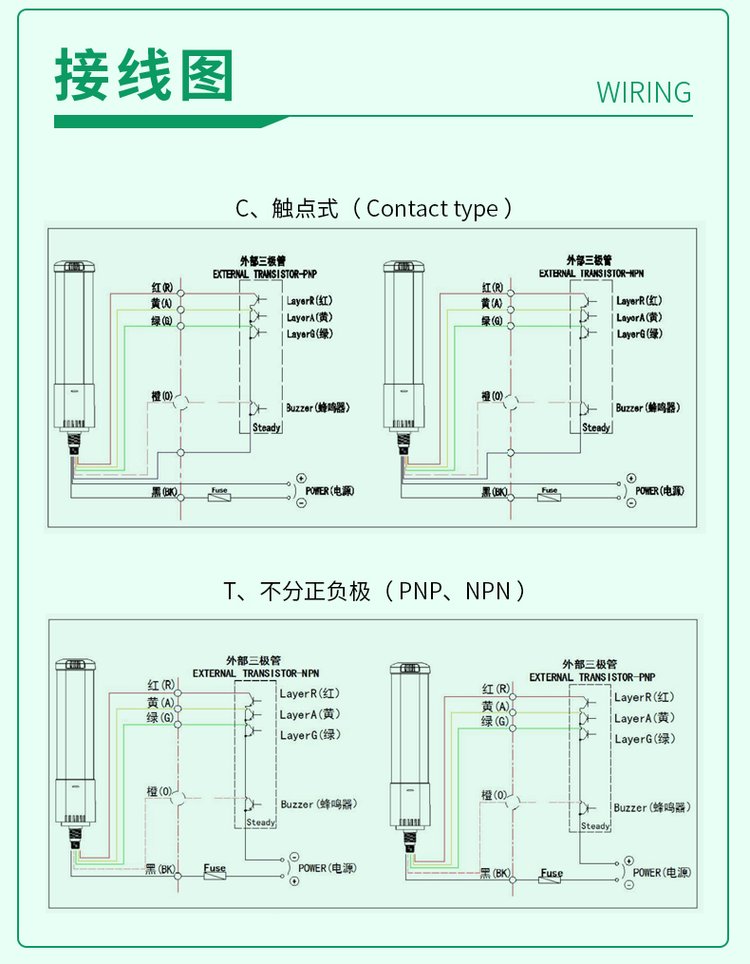 接线方式 | 不分正负极 、触点式 | ||