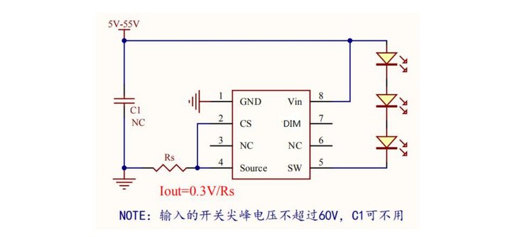 内置过温保护 | 内置 MOS 可做 1A | ||
