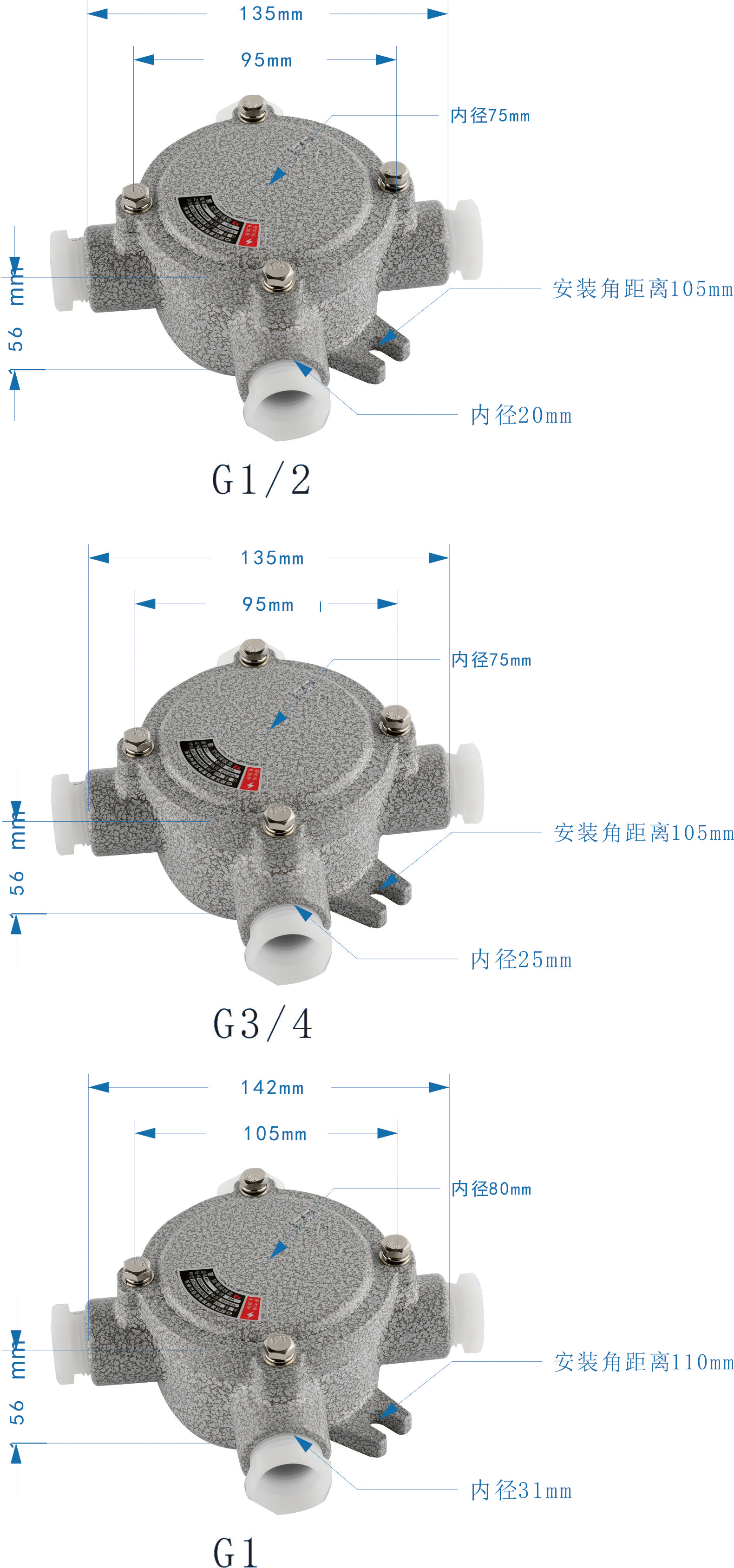 铝合金AH/BHD防爆接线盒g1/2角通三通4分圆型分线盒dn15源头工厂 货号 | AH | ||