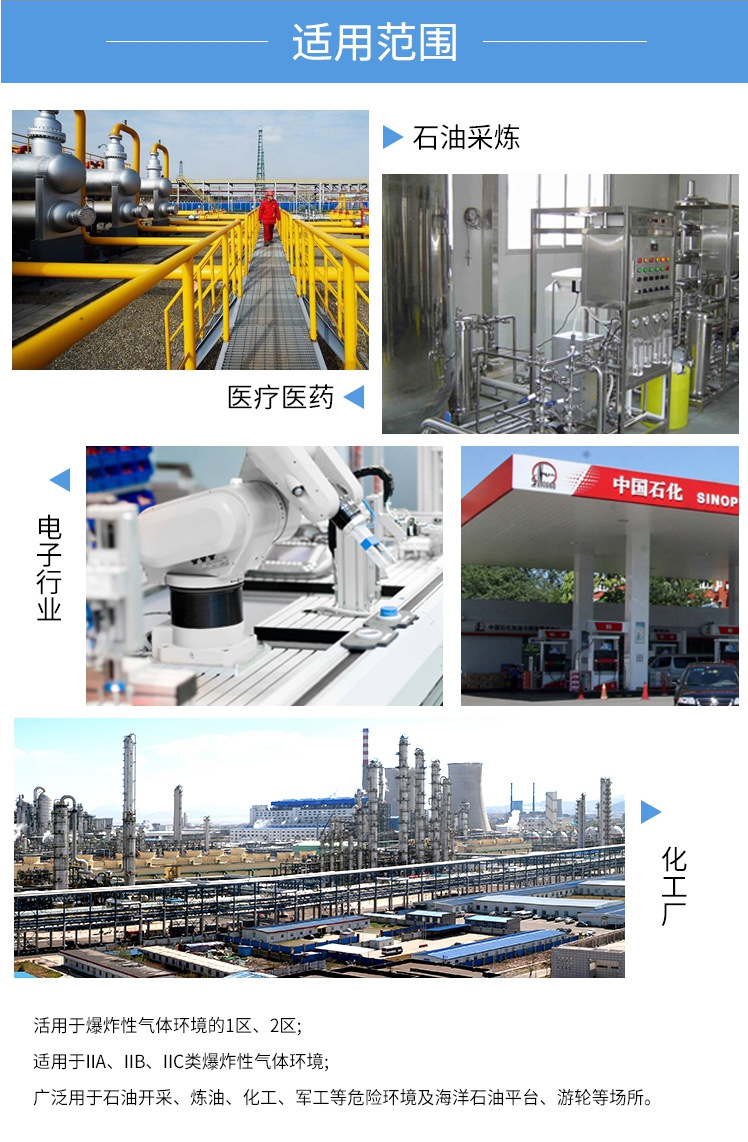 使用环境 | 适用于IIA、IIB、IIC级爆炸性气 | ||