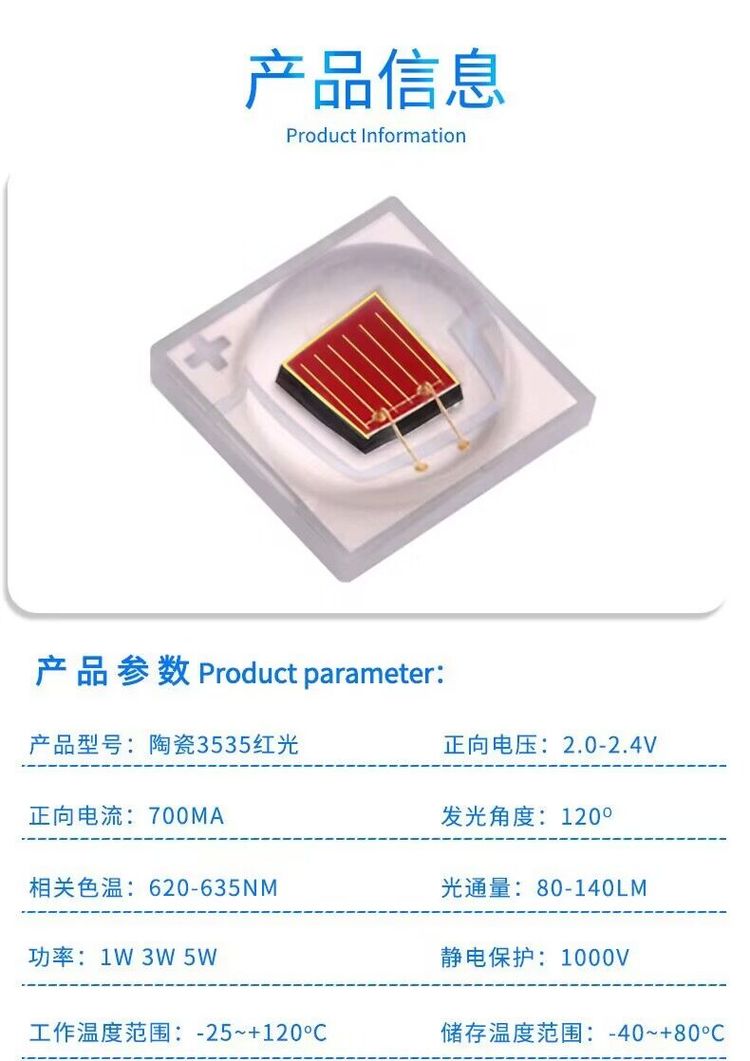 超高亮LED车灯/植物灯光源3W红光 晶元630nm660nm3535陶瓷红光灯珠 品牌 | 宏智光电 | ||