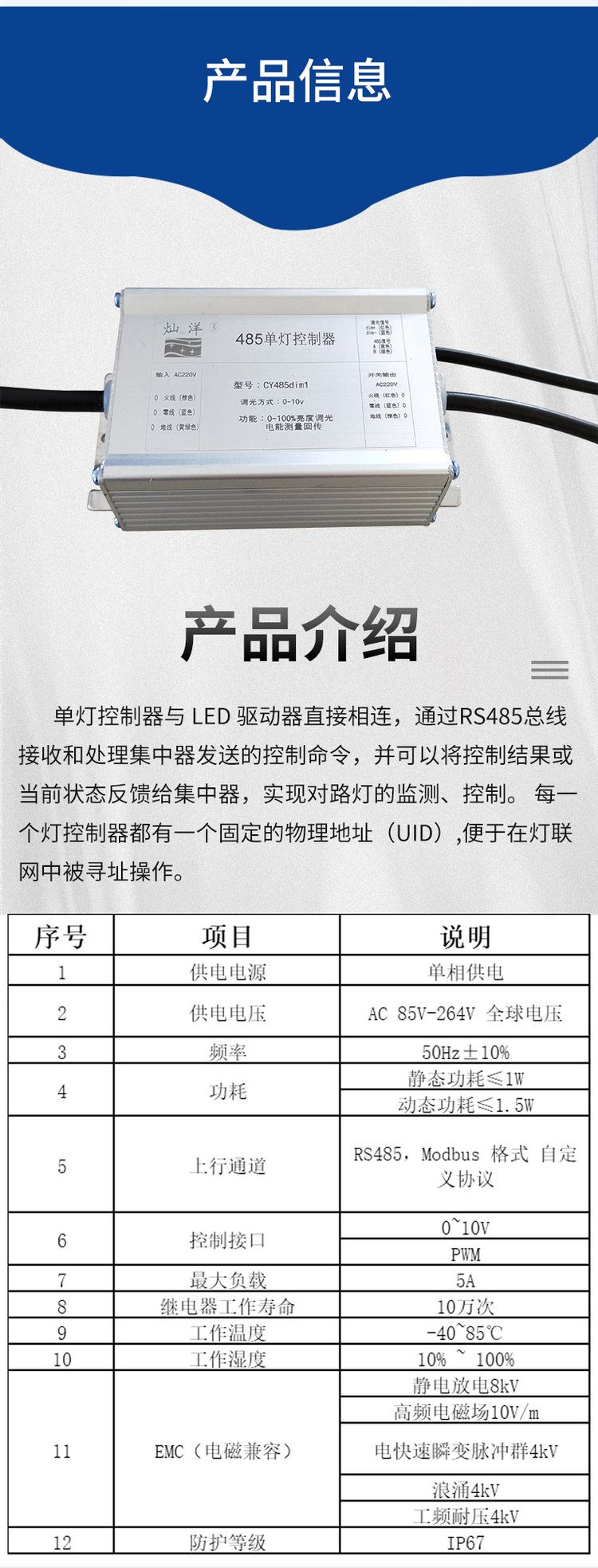 RS485型单灯控制器单灯控制器智能照明控制模块