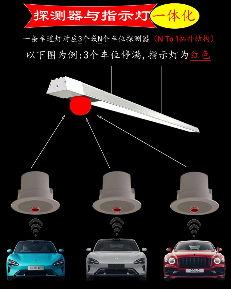停车场车位探测器有车红灯无车绿灯快速找车位好美
