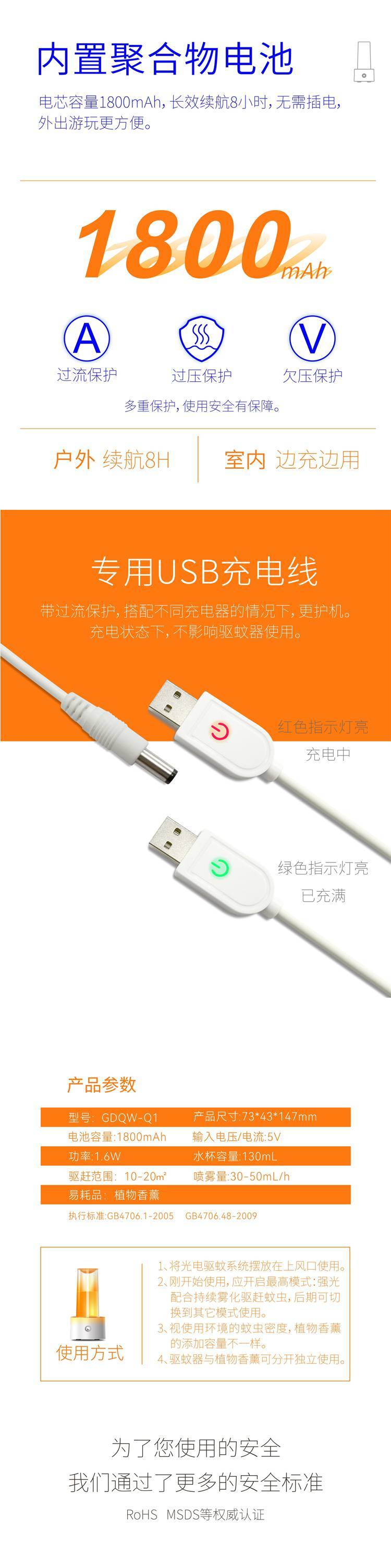 高科达便携式无线光电驱蚊系统,适用于户外活动、露营、垂钓、庭院、客厅、卧室等场所安全、环保驱赶蚊虫。