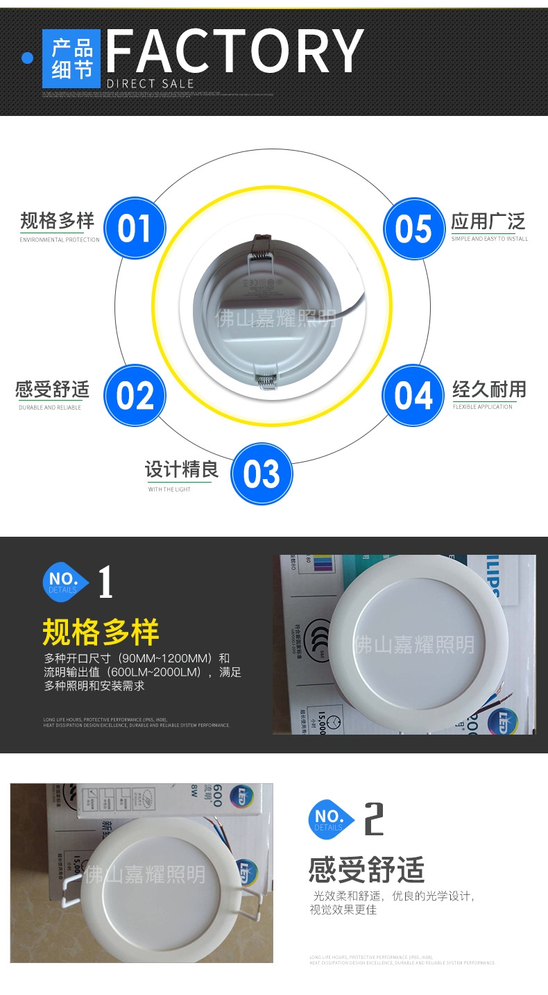 多种开口尺寸(90mm~1200mm)和流明输出值(600lm~2000lm),满足多种照明和安装需求