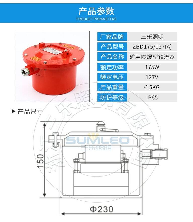品牌:浙江三乐照明 | 型号:ZBD175/127(A) |