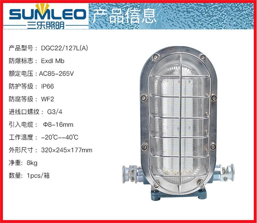表 1. 矿用隔爆型 LED 支架灯基本参数DGC22/127L(A) DGC22/127L(A)矿用隔爆型LED支架灯 矿用支架灯