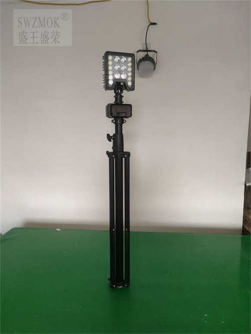 便携式工作灯灯头使用两节升降杆固定,1.15-1.8米高度范围内任意调节,并且可任意调节照射方向,升降杆和电池箱为一体式结构,使用方便灵活。