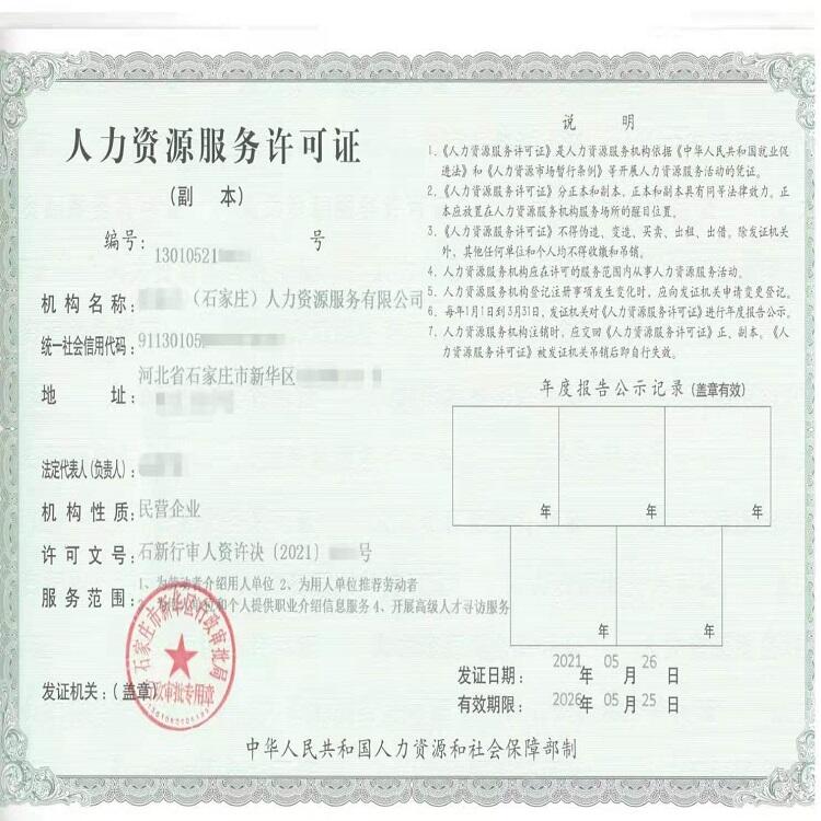 2、经区行政审批局审核、实地考察无误,发放《人力资源服务许可证》。