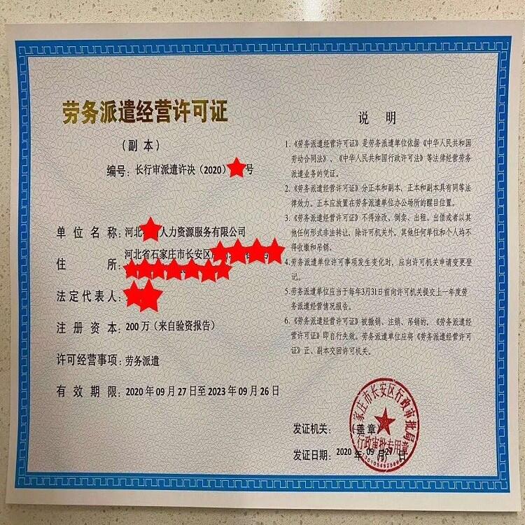 要经营上述范围的都是需要办理人力资源服务许可证的,这个是后置许可,办理过程中需要提供专业的人力资源材料,比如制度、合同等。