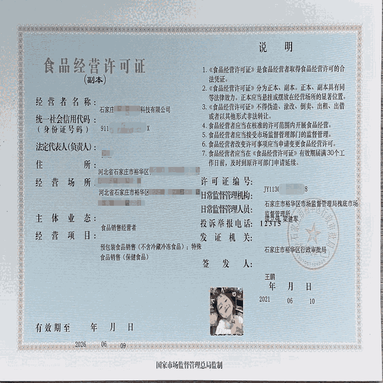 线下门店:当地市场监督管理局办理食品许可证,办好了挂在墙上,工商隔三差五来检查,没有这个罚款能把你罚到破产!!