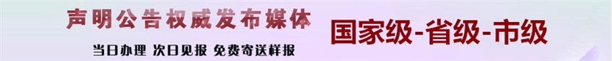在线办理:提供您要刊登的信息通过QQ或者微信、邮件、等形式发到本我司,然后我司排好版发给您确认,您确认无误后一般第二个工作日就可以见报,付费方式(转账、汇款、支付宝、微信都可以,报纸可以从附近的报亭购买,如不方便购买我们可以给您快递当天的报纸)。